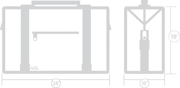 The large cooler has a capacity of 48-Cans and two 10 lb bags of ice.  It's the heavyweight multi-day tripper of the lineup. Dimensions: (25" x 13" x 19")